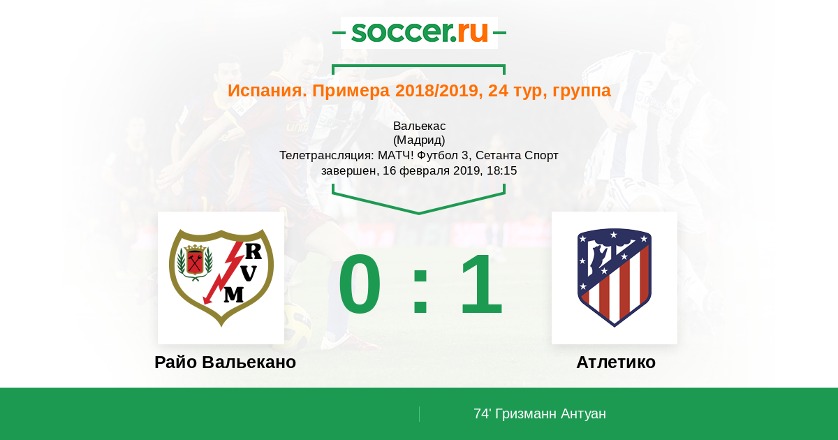 Вот и всё! "Атлетико" показал ужасную по качеству игру, но всё равно смог заработать три очка. "Райо Вальекано" наиграл, как минимум на ничью, однако неудачный рикошет от защитника решил исход дерби. Также стоит сказать о плохом судействе, к которому до сих пор есть вопросы. Текстовую онлайн-трансляцию провёл Глеб Васильев. Оставайтесь на Soccer.Ru!
