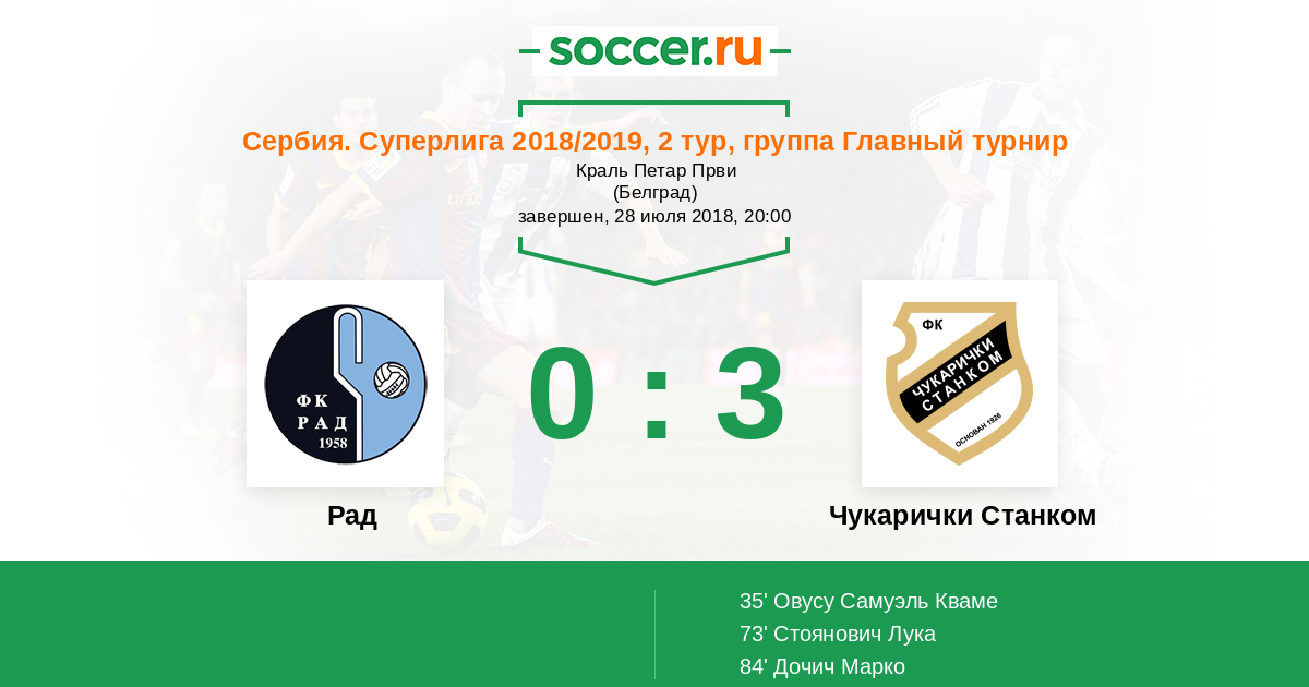 Рад - Чукарички Станком: обзор матча 28 июля 2018