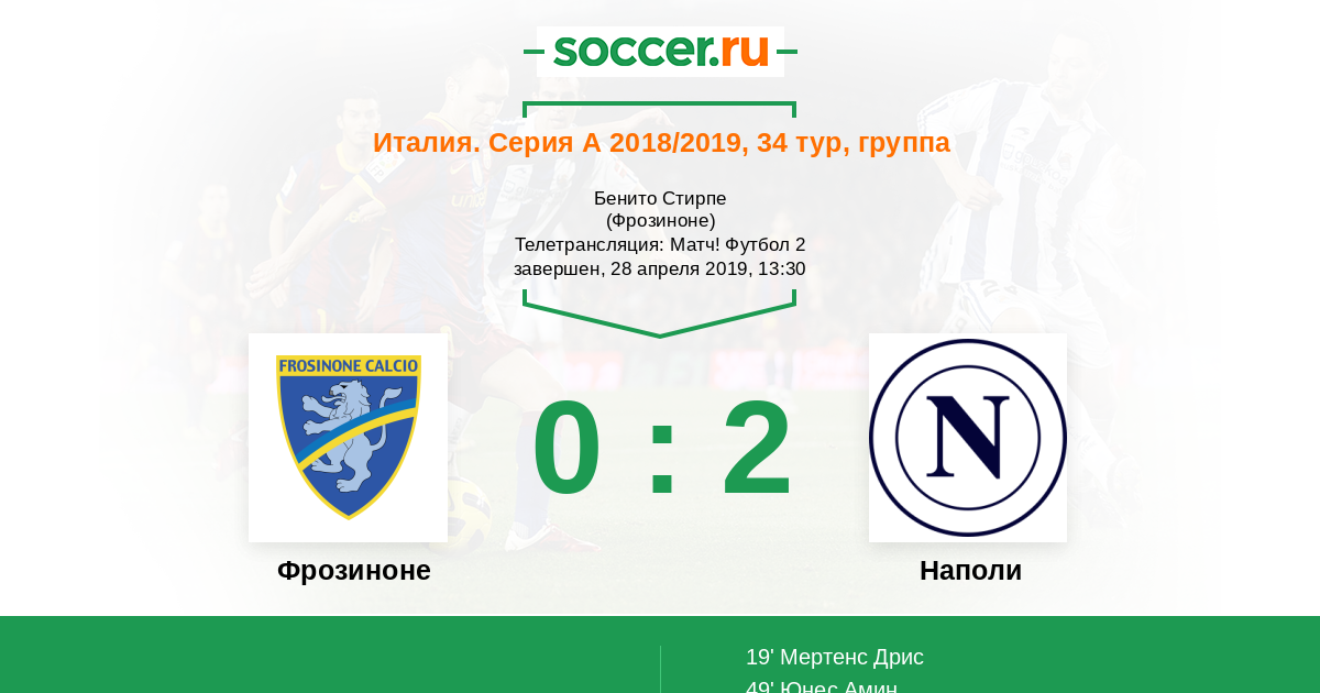 Фрозиноне - Наполи: обзор матча 28 апреля 2019