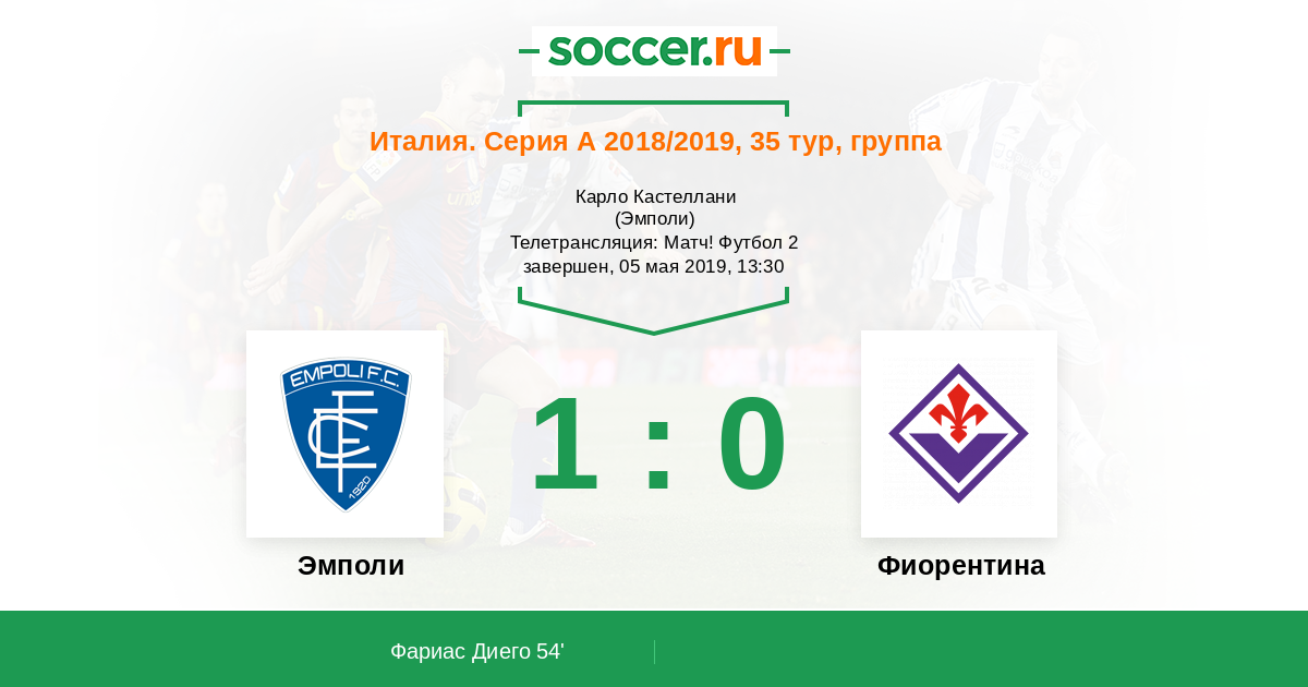 Эмполи, Карло Кастеллани Телетрансляция: Матч! Футбол 2