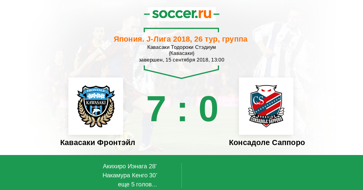 Кавасаки Фронтэйл - Консадоле Саппоро: обзор матча 15 сентября 2018