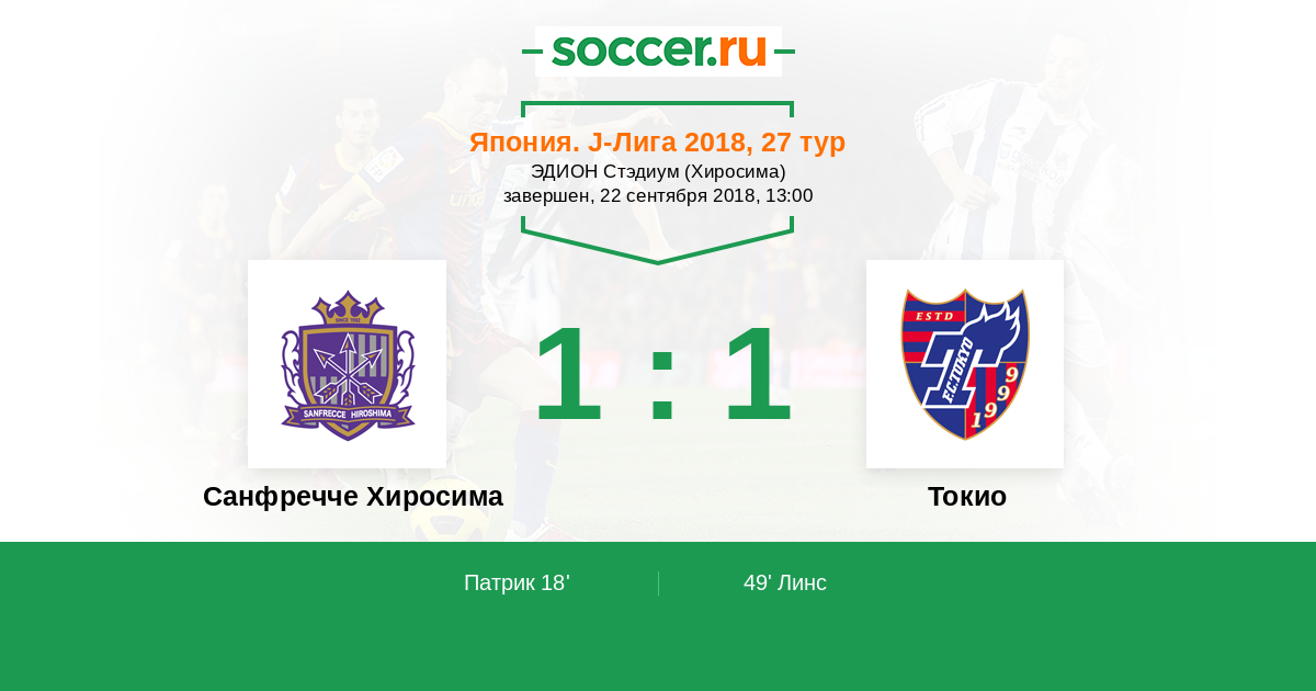 Санфречче Хиросима - Токио: обзор матча 22 сентября 2018