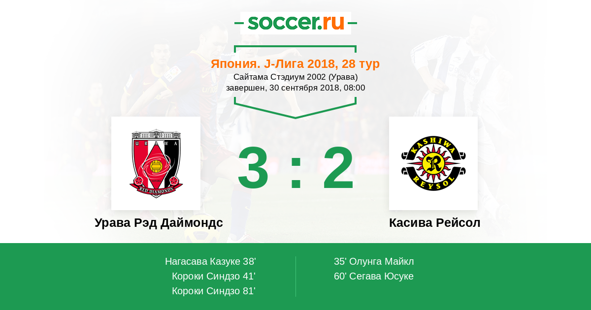 Урава Рэд Даймондс - Касива Рейсол: обзор матча 30 сентября 2018