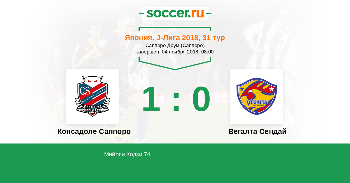 Консадоле Саппоро - Вегалта Сендай: обзор матча 4 ноября 2018