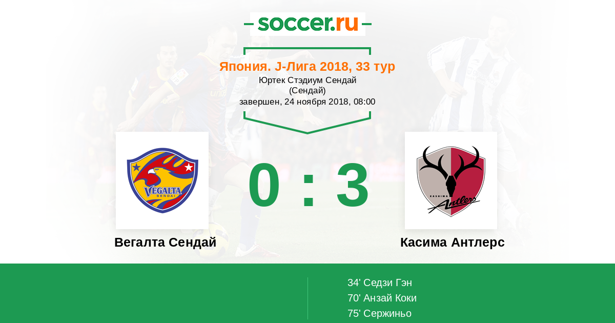 Вегалта Сендай - Касима Антлерс: обзор матча 24 ноября 2018