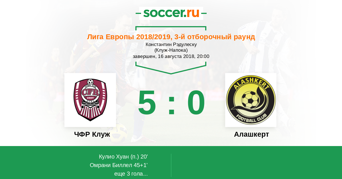 ЧФР Клуж - Алашкерт: обзор матча 16 августа 2018