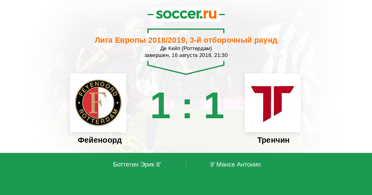 Фейеноорд - Тренчин: обзор матча 16 августа 2018