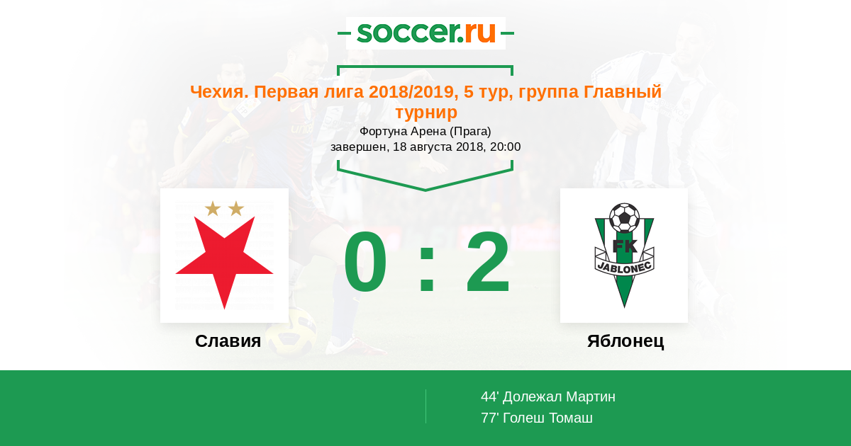 Славия - Яблонец: обзор матча 18 августа 2018