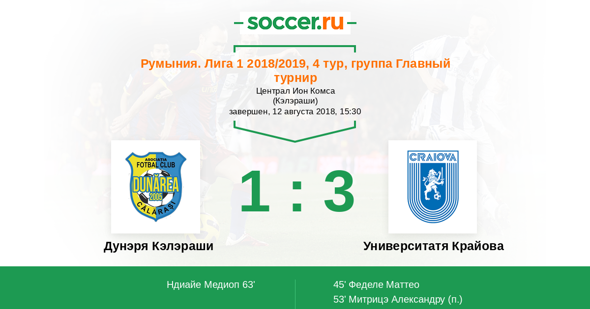 Дунэря Кэлэраши - Университатя Крайова: обзор матча 12 августа 2018