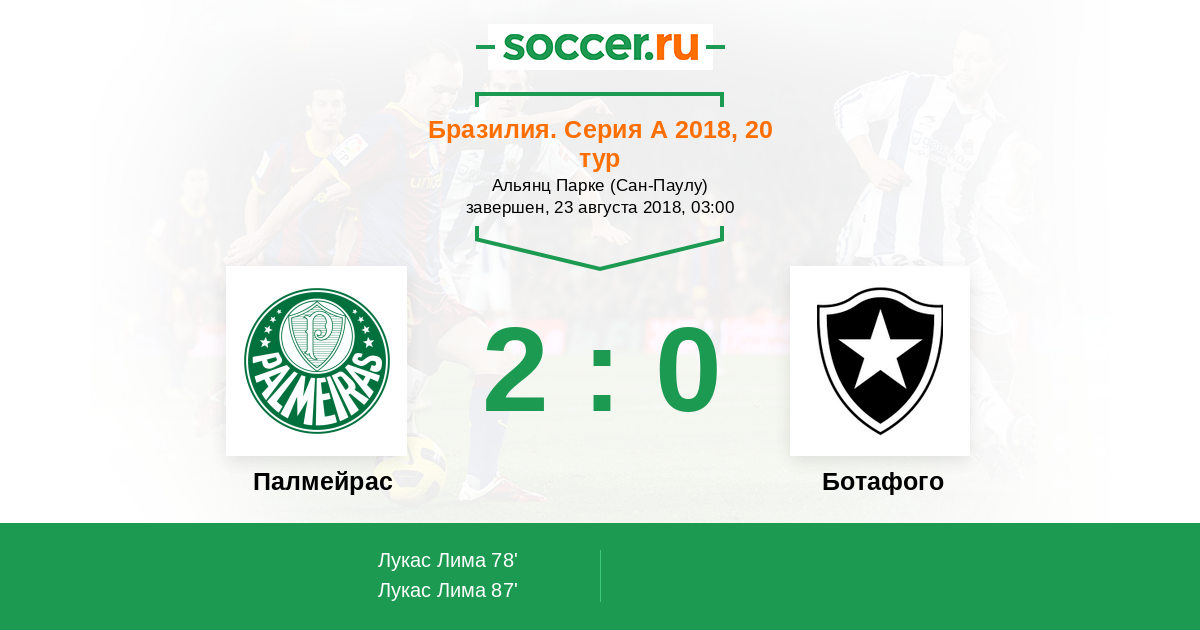 Палмейрас - Ботафого: обзор матча 23 августа 2018