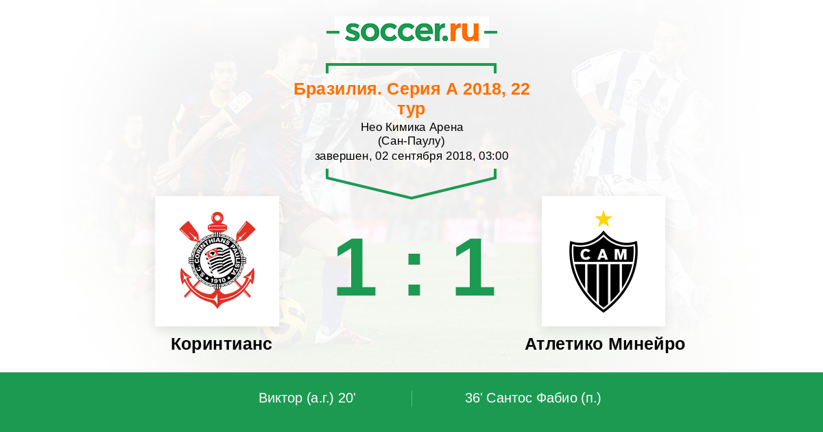 Коринтианс - Атлетико Минейро: обзор матча 2 сентября 2018