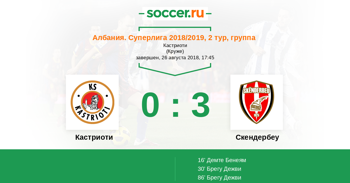 Кастриоти - Скендербеу: обзор матча 26 августа 2018