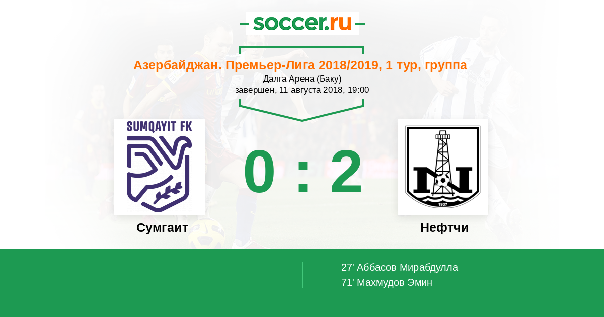 Сумгаит - Нефтчи: обзор матча 11 августа 2018