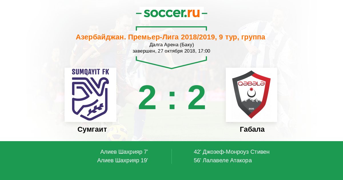 Сумгаит - Габала: обзор матча 27 октября 2018