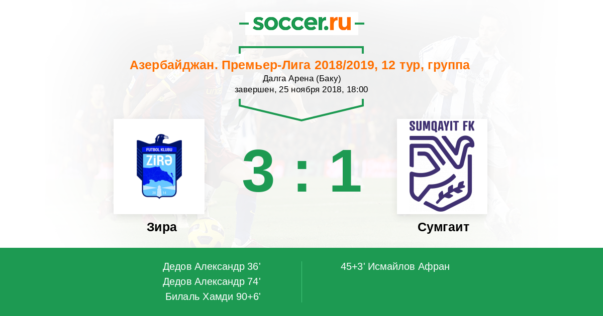 Зира - Сумгаит: обзор матча 25 ноября 2018