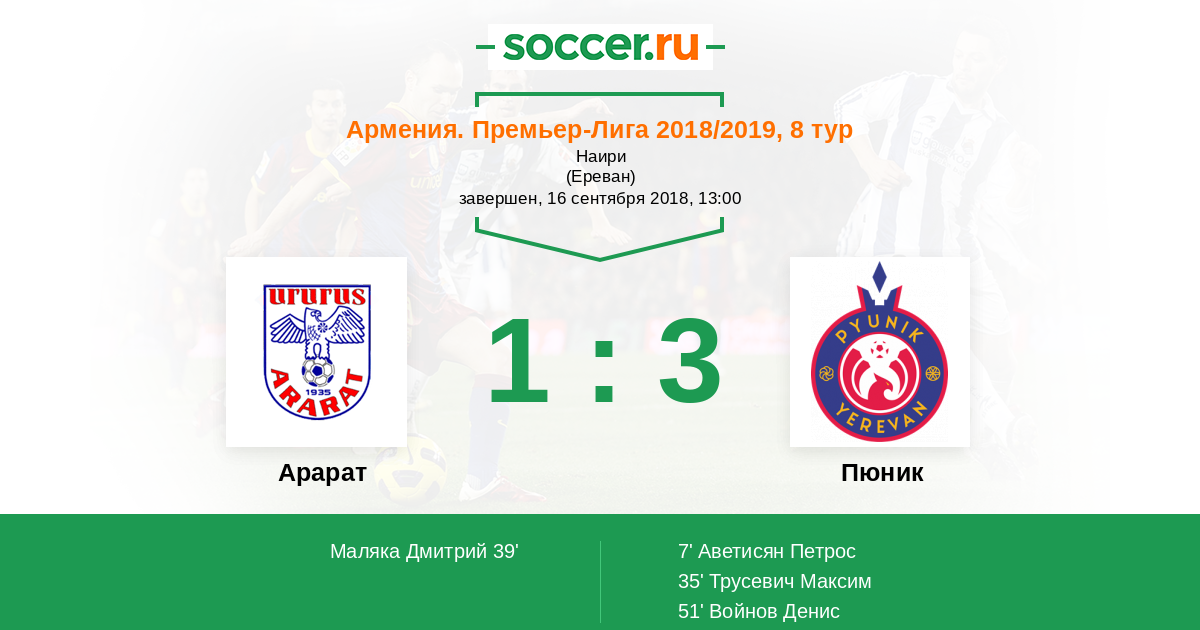 Арарат - Пюник: обзор матча 16 сентября 2018