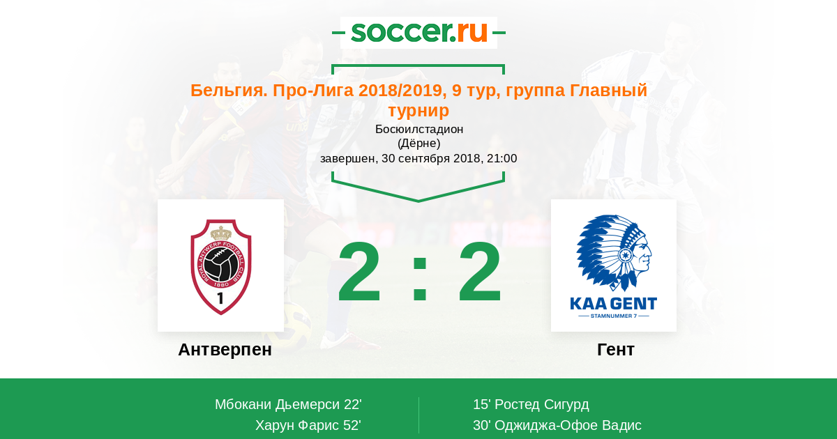 Антверпен - Гент: обзор матча 30 сентября 2018