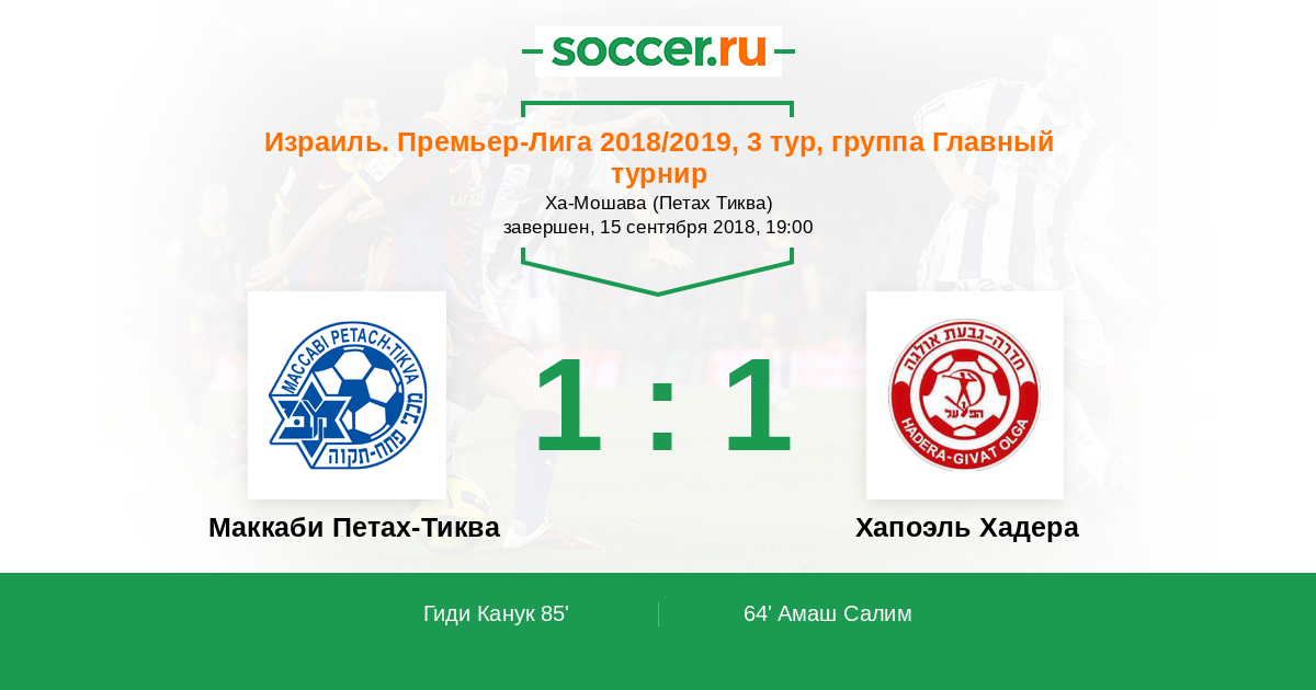Маккаби Петах-Тиква - Хапоэль Хадера: обзор матча 15 сентября 2018