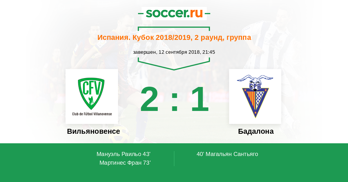 Вильяновенсе - Бадалона: обзор матча 12 сентября 2018