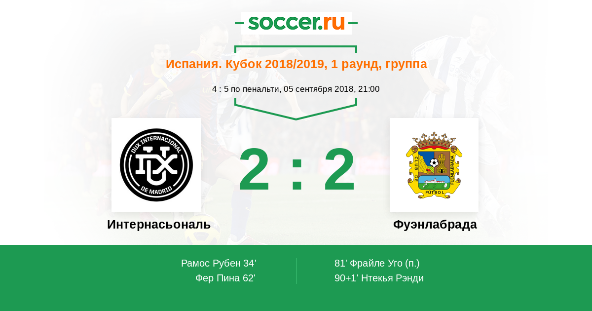 Интернасьональ - Фуэнлабрада: обзор матча 5 сентября 2018