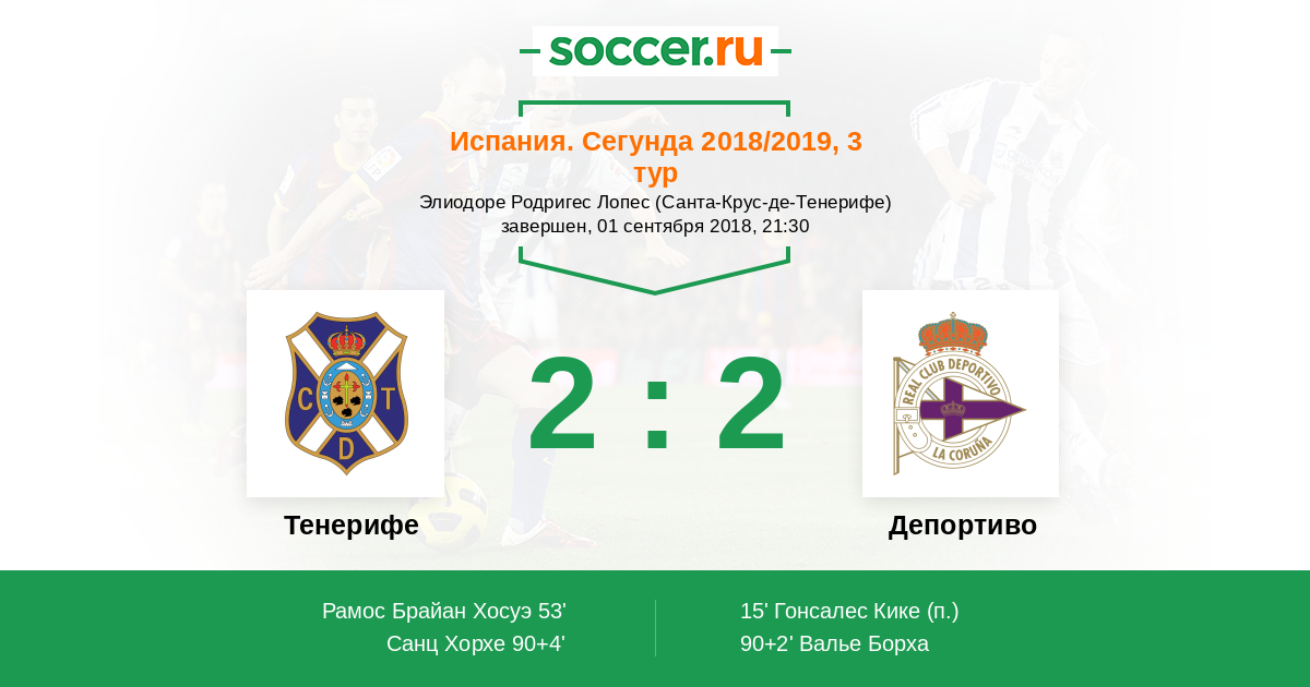 Тенерифе - Депортиво: обзор матча 1 сентября 2018