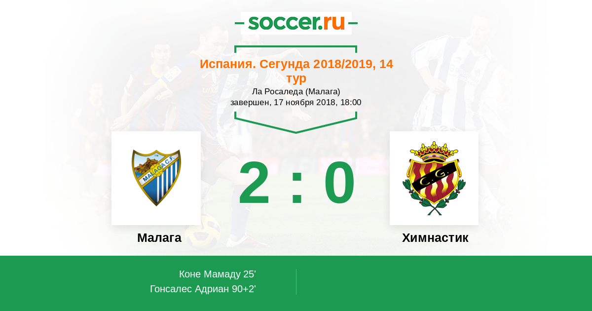 Малага - Химнастик: обзор матча 17 ноября 2018