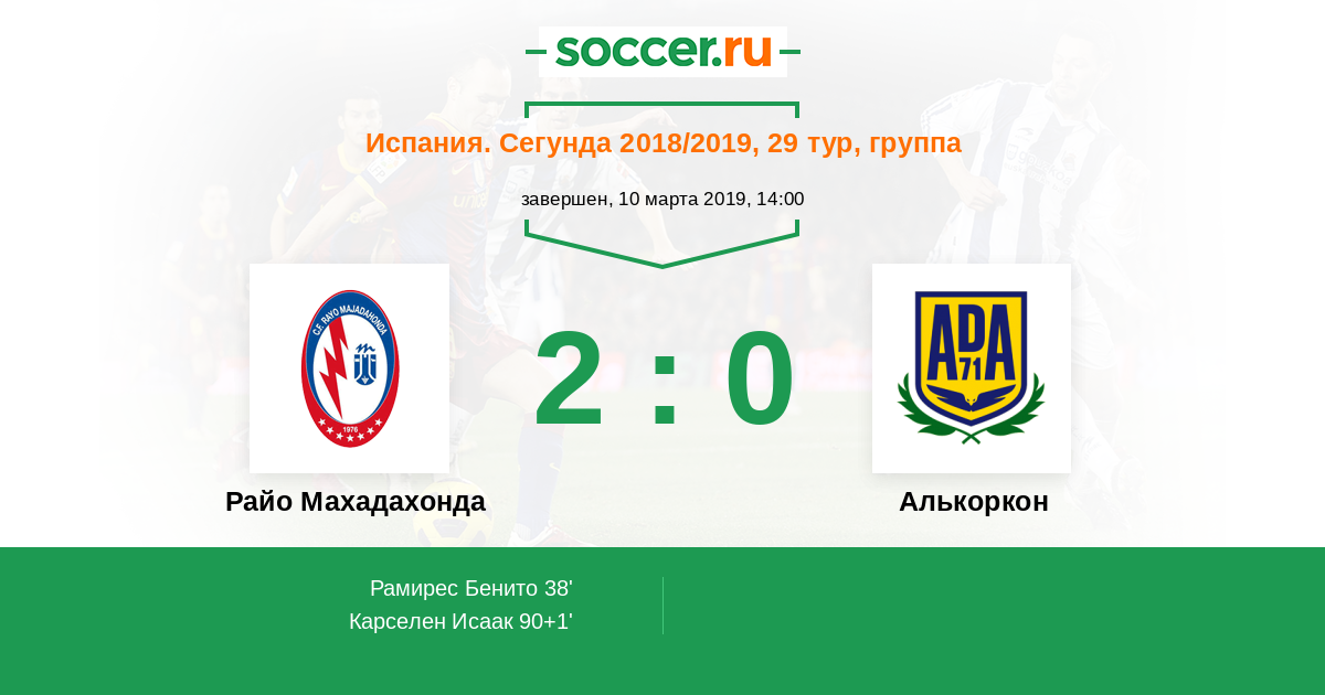 Райо Махадахонда - Алькоркон: обзор матча 10 марта 2019