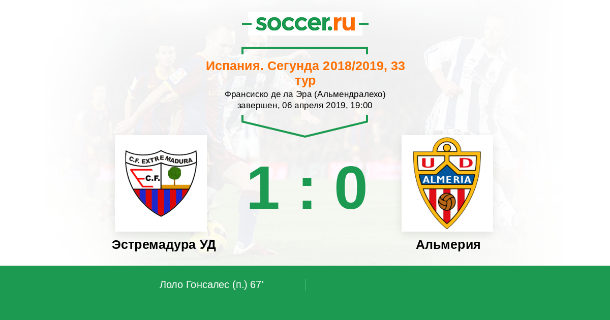 Эстремадура УД - Альмерия: обзор матча 6 апреля 2019