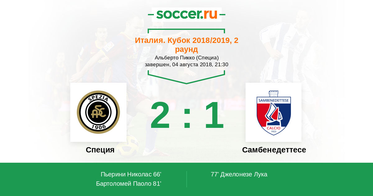 Специя - Самбенедеттесе: обзор матча 4 августа 2018