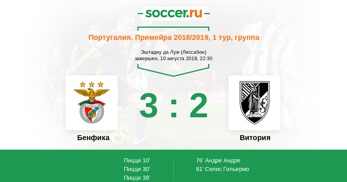 Бенфика - Витория: обзор матча 10 августа 2018