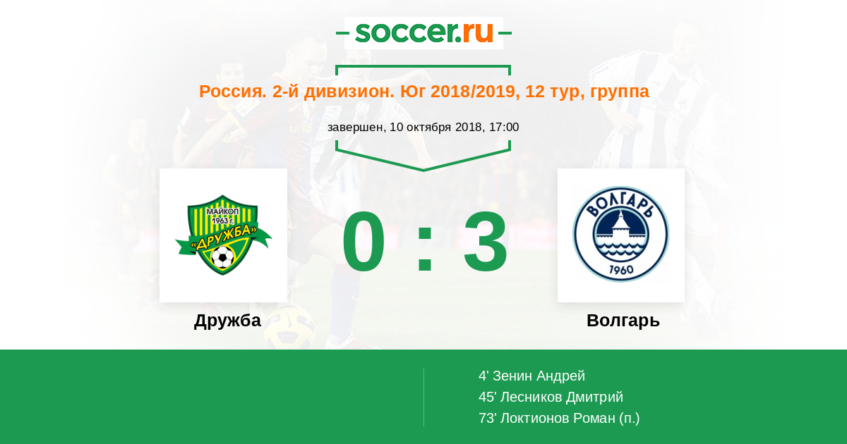 Дружба - Волгарь: обзор матча 10 октября 2018