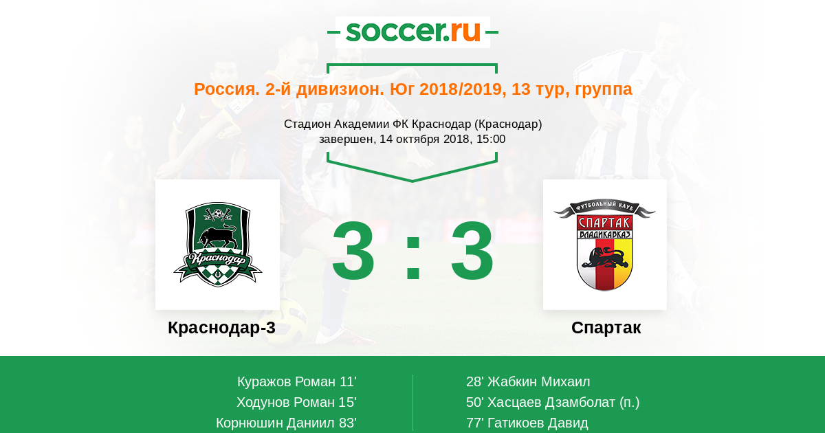 Краснодар-3 - Спартак: обзор матча 14 октября 2018