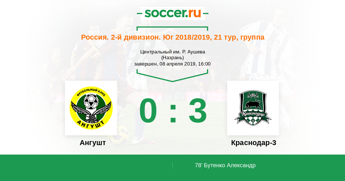 Ангушт - Краснодар-3: обзор матча 8 апреля 2019