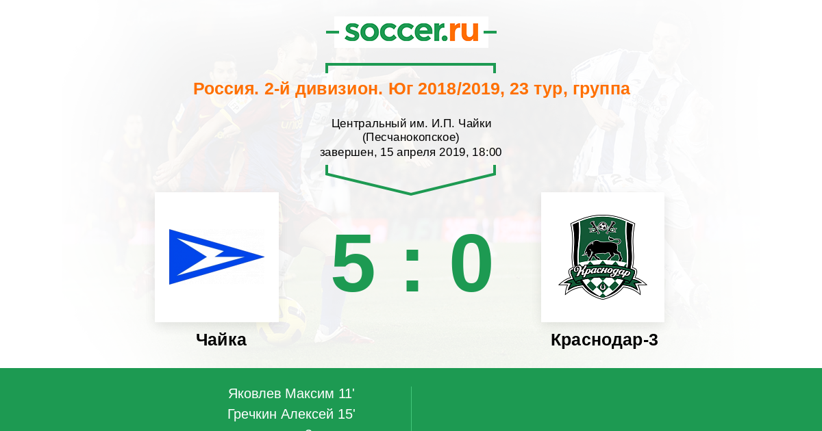 Чайка - Краснодар-3: обзор матча 15 апреля 2019