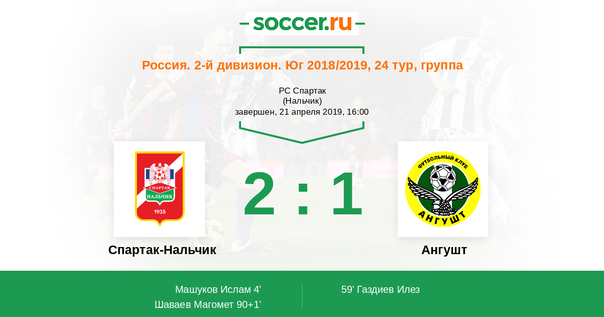 Спартак-Нальчик - Ангушт: обзор матча 21 апреля 2019