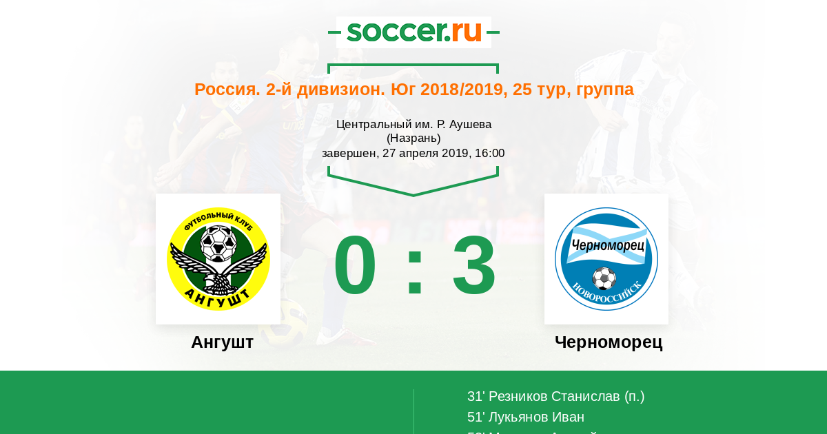 Ангушт - Черноморец: обзор матча 27 апреля 2019