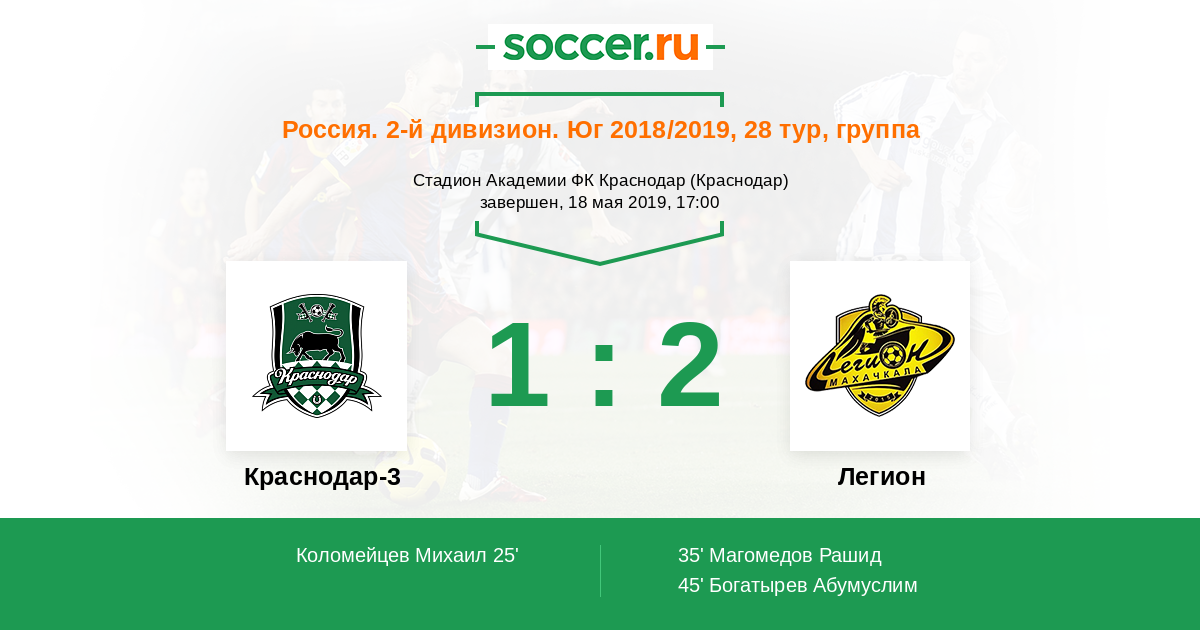 Краснодар-3 - Легион: обзор матча 18 мая 2019
