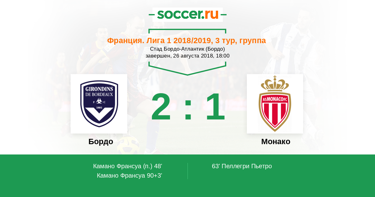 Jean-Eudes Ахолу (Монако) действовал слишком грубо при попытке отнять мяч у соперника, и Clement Турпен остановил игру. Штрафной удар пробьет Бордо.