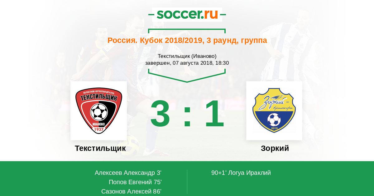 Текстильщик - Зоркий: обзор матча 7 августа 2018