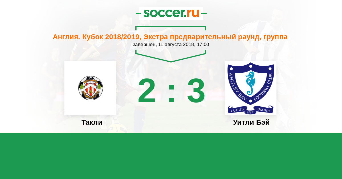 Такли - Уитли Бэй: обзор матча 11 августа 2018