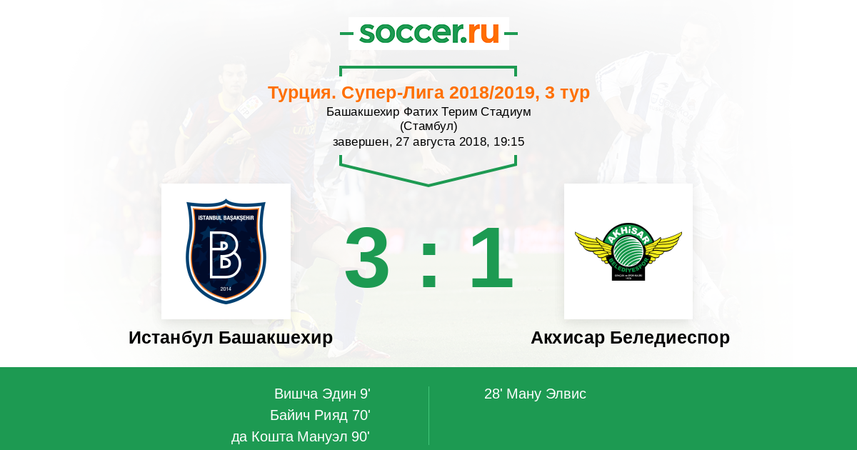 Истанбул Башакшехир - Акхисар Беледиеспор: обзор матча 27 августа 2018