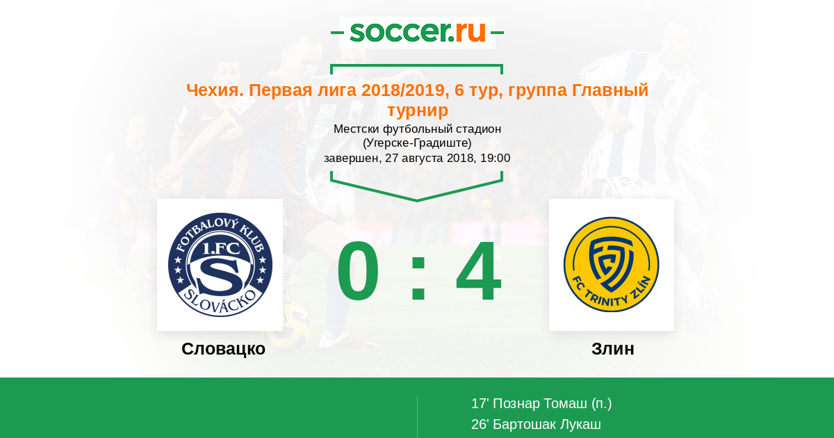 Словацко - Злин: обзор матча 27 августа 2018