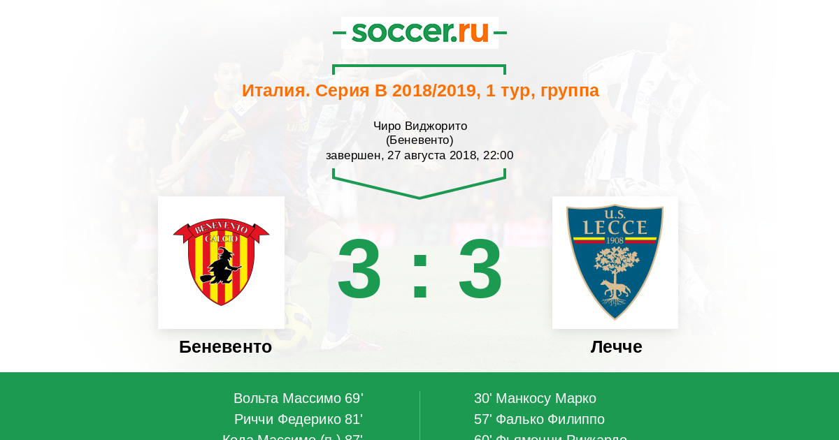 Беневенто - Лечче: обзор матча 27 августа 2018