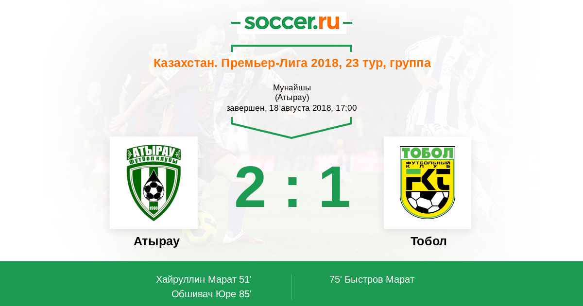 Атырау - Тобол: обзор матча 18 августа 2018