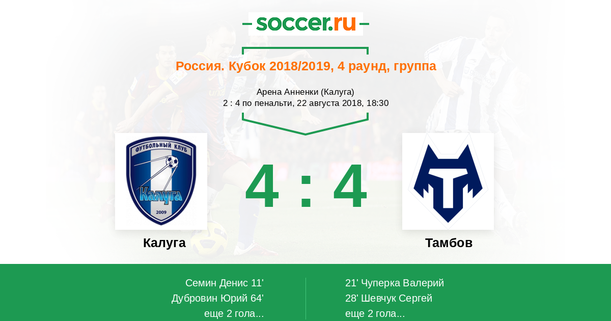 Калуга - Тамбов: обзор матча 22 августа 2018