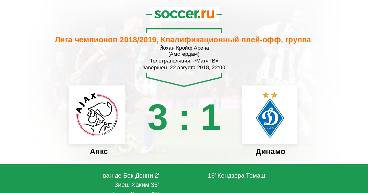 — AFC Ajax (@AFCAjax) 22 августа 2018 г.