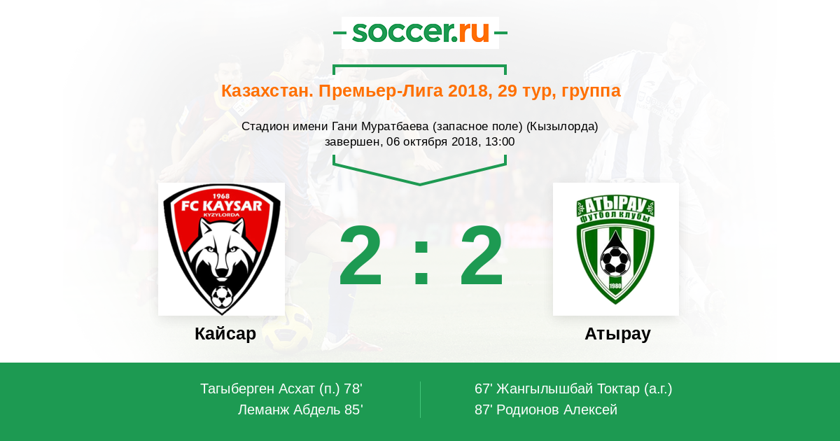 Кайсар - Атырау: обзор матча 6 октября 2018