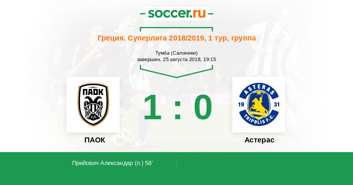 ПАОК - Астерас: обзор матча 25 августа 2018