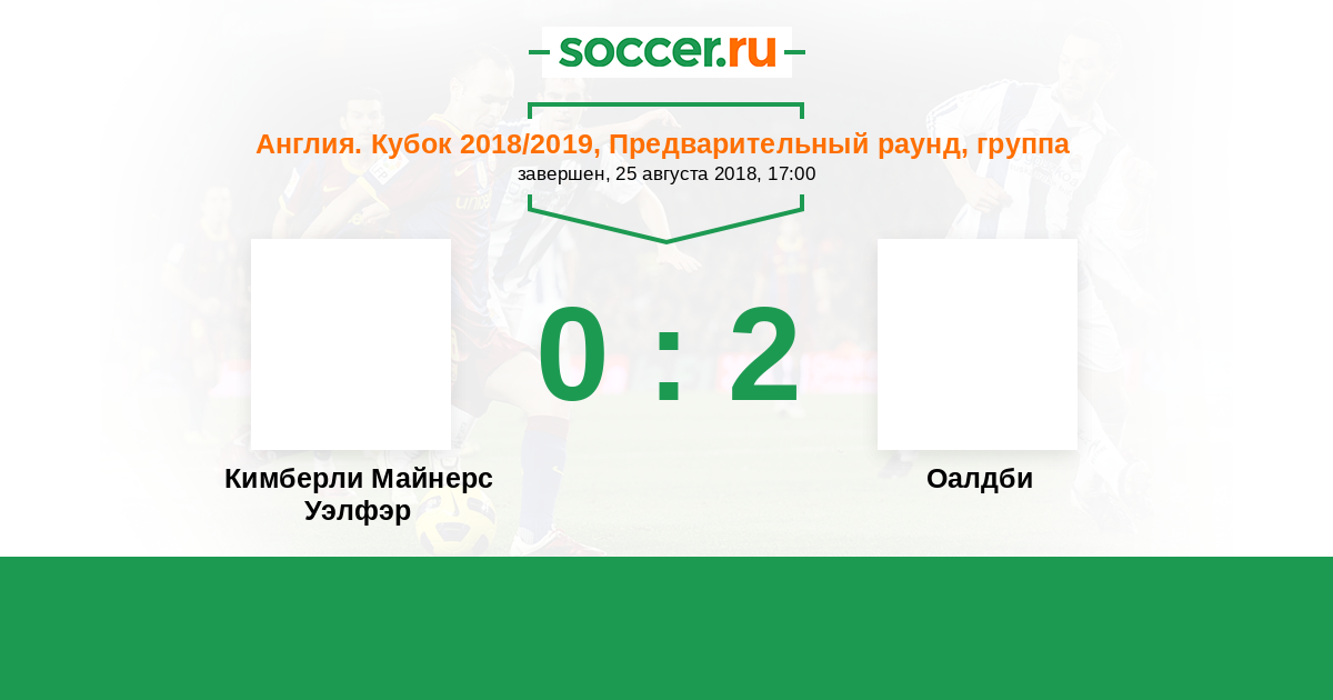 Кимберли Майнерс Уэлфэр - Оалдби: обзор матча 25 августа 2018