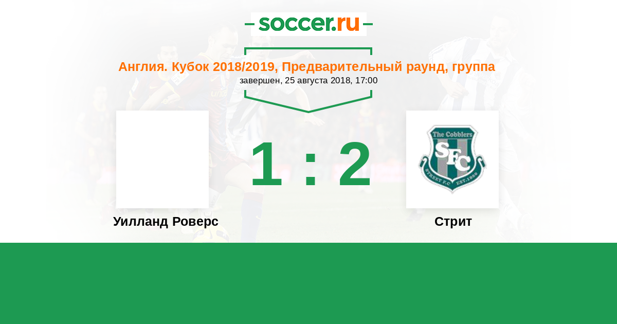 Уилланд Роверс - Стрит: обзор матча 25 августа 2018